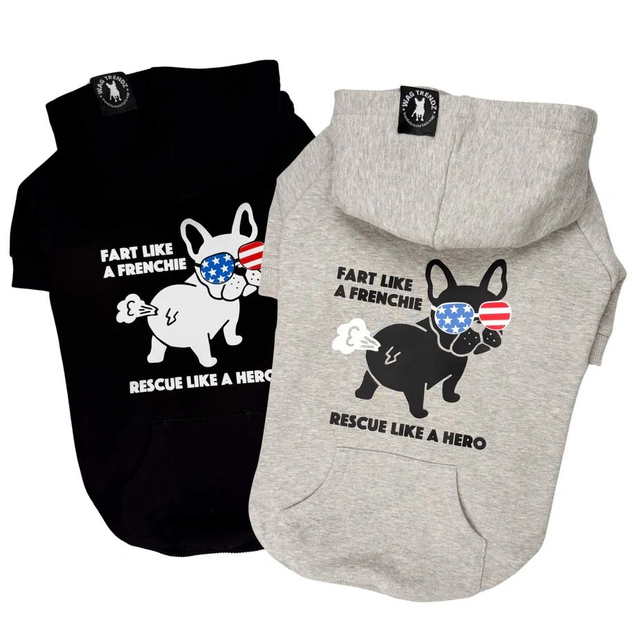 We have partnered with WagTrendz for this specialized Hooded Sweatshirt: "Fart Like A Frenchie, Rescue Like A Hero". Use code FFR15 at checkout to save.